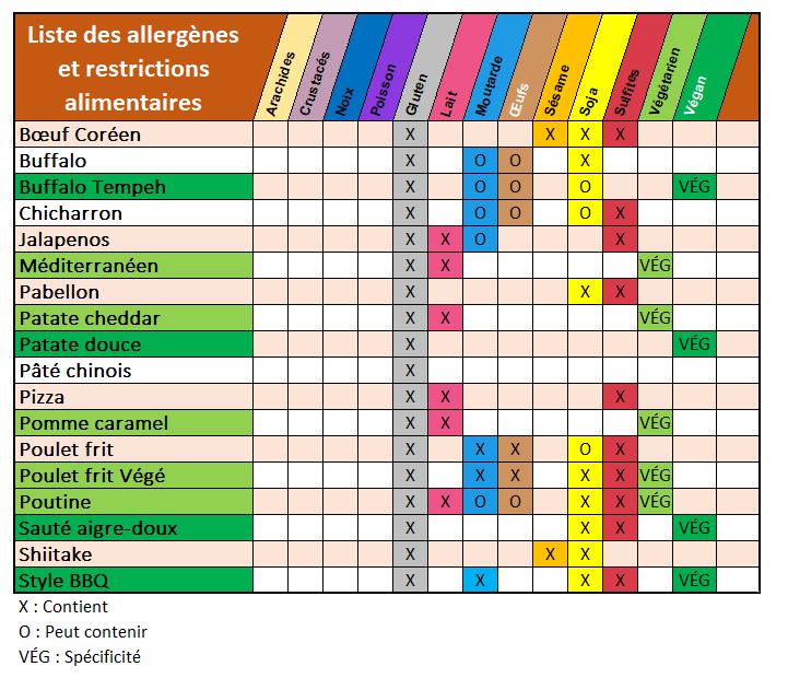 Contient: Gluten, Moutarde, Soya, Sulfite