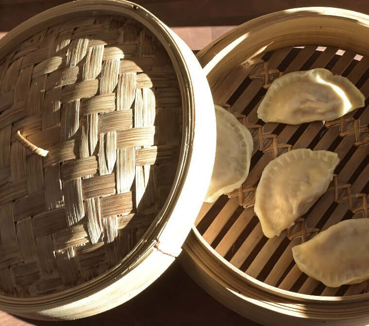 Dans un chaudron mettre 5 cm d'eau et porter à ébullition. Baisser le feu à médium. Déposer les dumplings dans un plat de bamboo ou une étuveuse (mettre un papier parchemin dans le fond). Mettre le plat sur le chaudron et cuire environ 8 minutes. (Garder congelé)