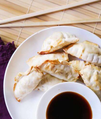 Selon la puissance de votre micro-onde, passer les dumplings sous l'eau puis les réchauffer environ 1 minute 30 secondes. (Garder congelé)